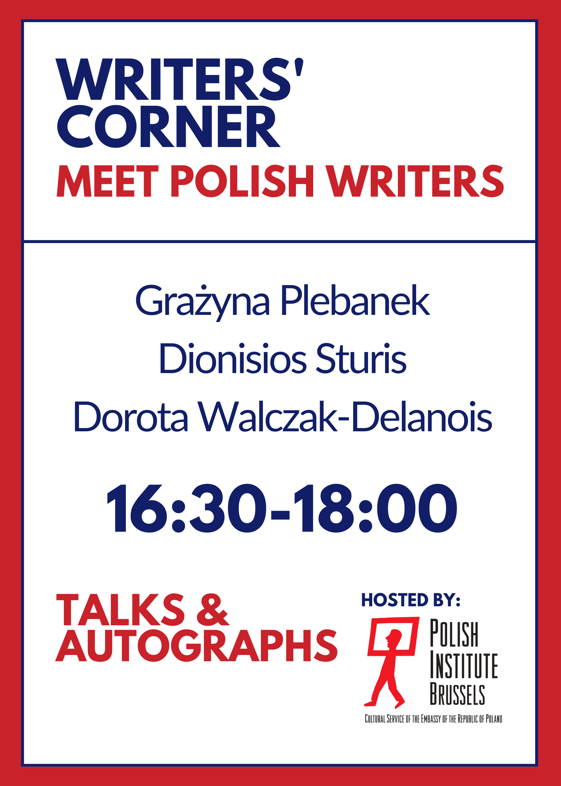 Meet Polish writers living in Belgium: Grażyna Plebanek, Dionisios Sturis, and Dorota Walczak-Delanois. Find out more about their work and experiences. Chats and autographs.