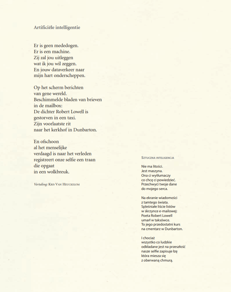 The event will also feature two intermezzi blending Lipska’s poetry and music, performed by Katharina Smets and Tim Vandenbergh.