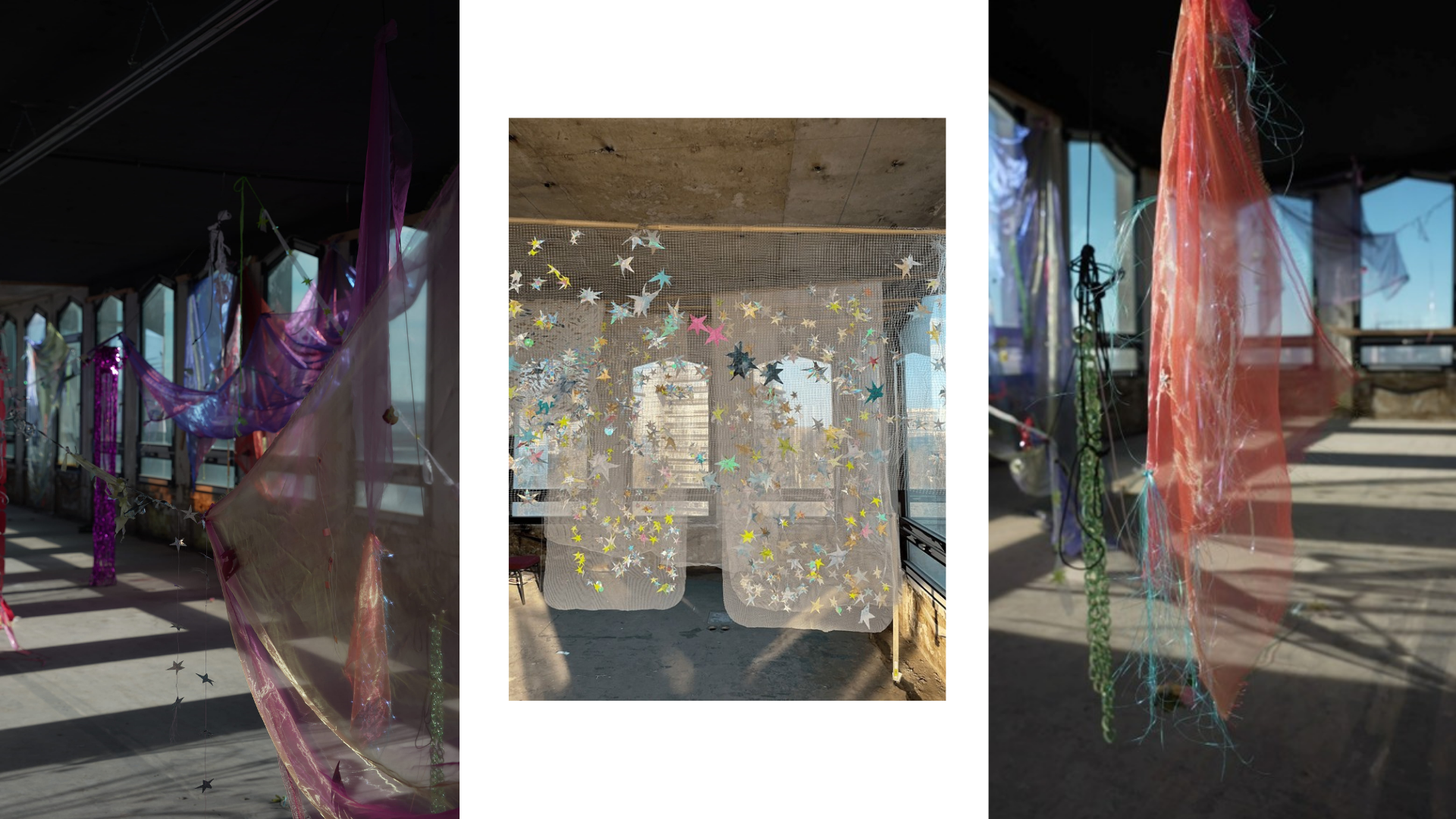 The performance treats the space as a dynamic system rather than a fixed exhibition setting. Light entering the building at sunset, reflections from the panoramic windows, and the movement of the artist and the objects create a sequence of changing situations. Through subtle gestures and mechanical activation, the installations come into motion, transforming the atmosphere of the space and inviting the audience to experience the works as a continuously unfolding environment.