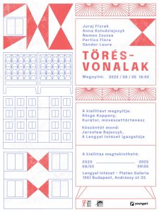 A Törésvonalak című kiállítás öt művész – Juraj Florek, Anna Kołodziejczyk, Sándor Laura, Pertics Flóra és Nemes Zsuzsa – munkáin keresztül vizsgálja Kelet-Közép-Európa vizuális kultúráját, különös tekintettel a tér, az emlékezet és az identitás kérdéseire.