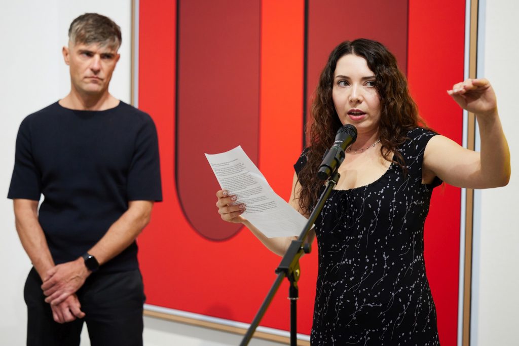 The exhibition by Jakub Ciężki, titled “Visual Grammar. Soft Tissue Separation,” presents the artist’s works created over the past few years. The large-format canvases are his personal manifestation of a departure from representational painting and a turn toward abstraction—an area in which he seeks new formal and compositional solutions. His work aligns with a broader artistic trend: a return to abstraction, which is currently visible in the international art scene and particularly popular in Hungary. What is most characteristic of the artist is his continual return to the fundamentals of thinking about painting, as well as his reinterpretation of the avant-garde and demonstration of the ongoing relevance of its language, the so-called „visual language.”