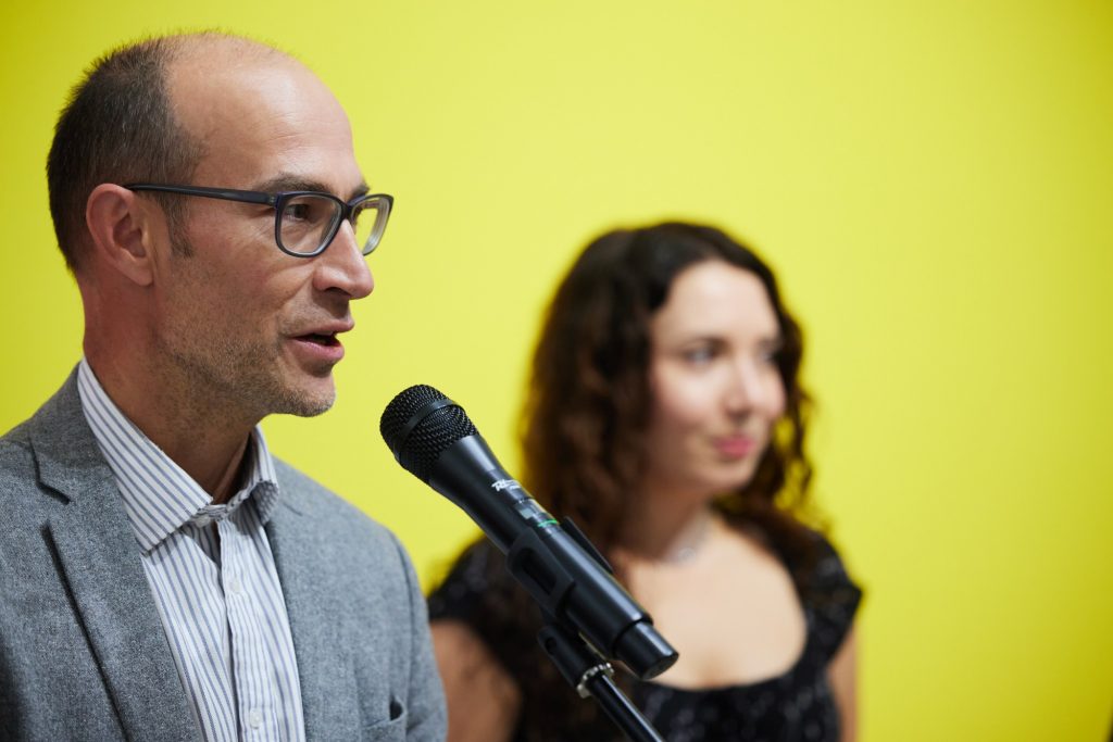Köszöntőt mond Jarosław Bajaczyk, a Lengyel Intézet igazgatója