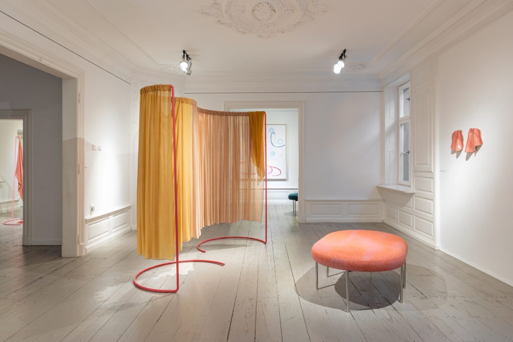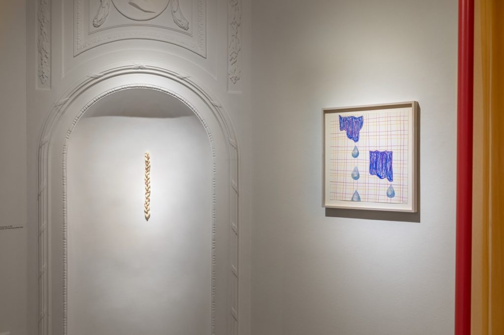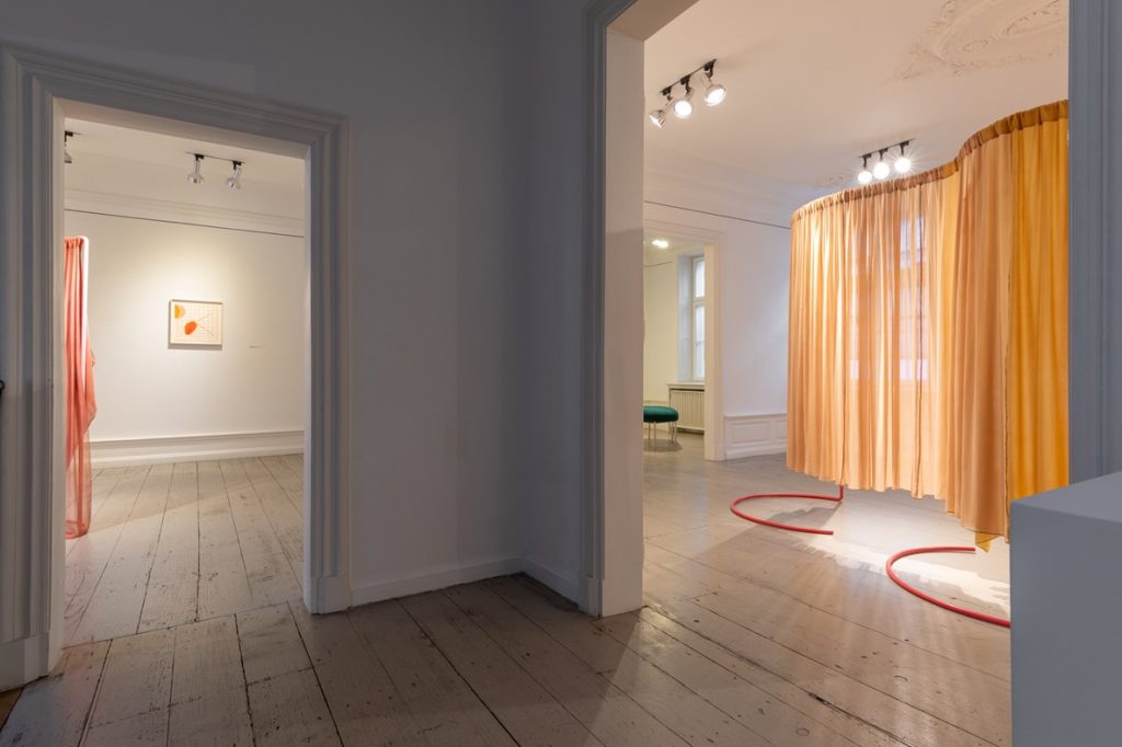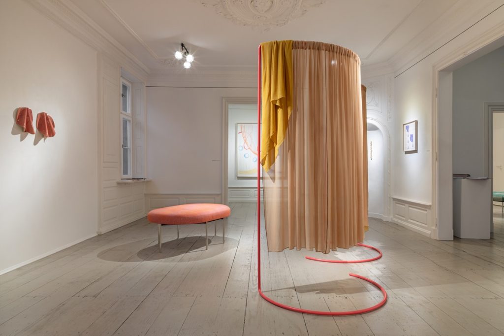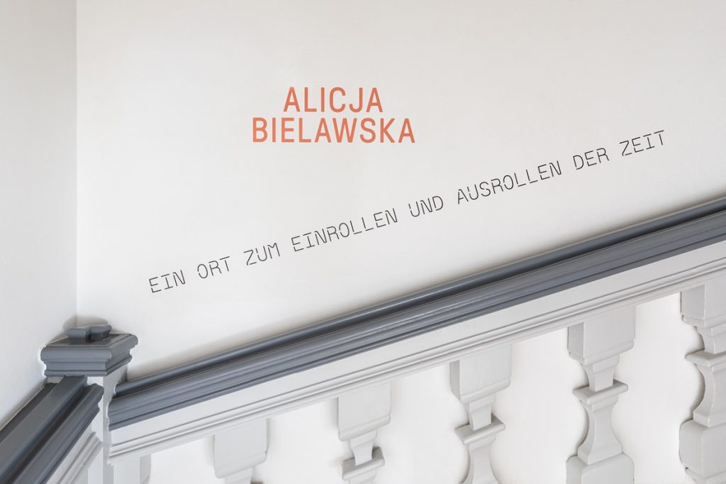 Miejsce na zwijanie i rozwijanie czasu Alicji Bielawskiej to wystawa, w której splatają się różne rejestry doświadczania: materialność i ulotność, teraźniejszość i pamięć, zatrzymanie i płynność. Pofałdowane materie sugerują, że czas nie jest linearny – może się zakrzywiać, powtarzać, nakładać. Prace wchodzą w dialog z miejscem – dawnymi mieszkalnymi przestrzeniami. Relacje pomiędzy rzeźbami, rysunkami a gestami i spojrzeniami odbiorców ulegają nieustannym, subtelnym zmianom. To widzowie tworzą niepowtarzalne, bo osobiste choreografie obecności na wystawie, ożywiając ją swoimi odczuciami, wspomnieniami, ucieleśnioną percepcją i ruchem.