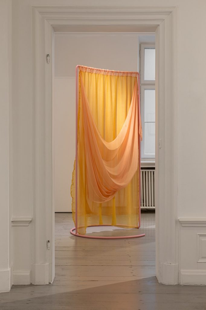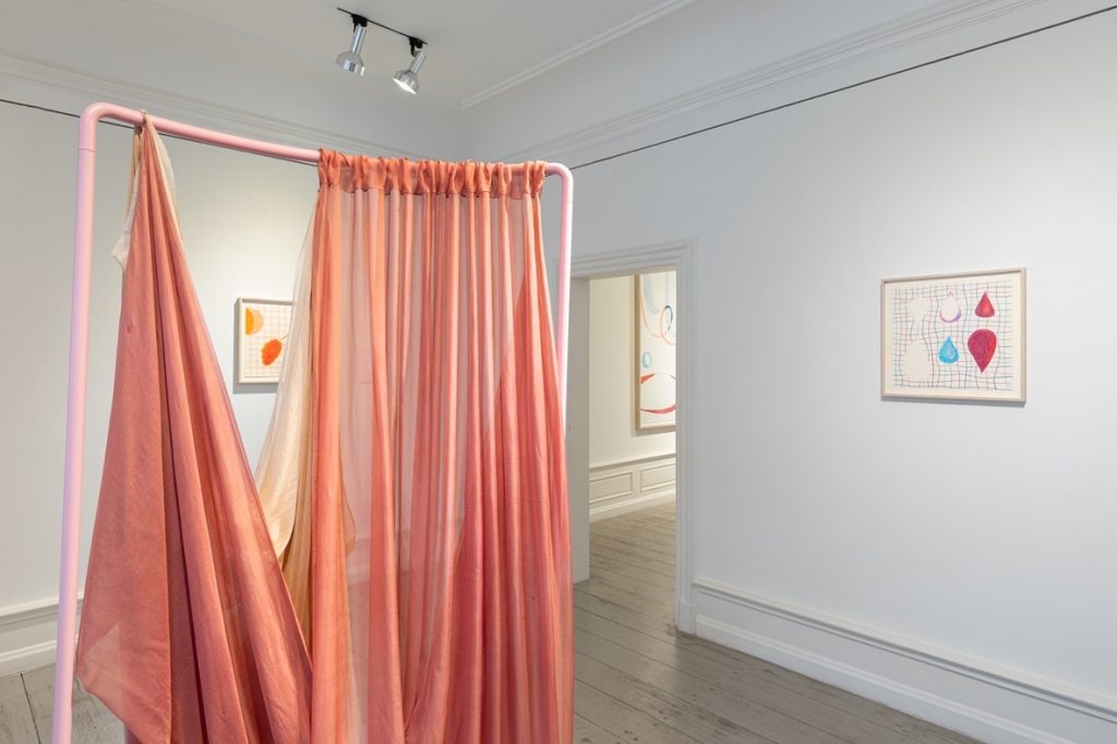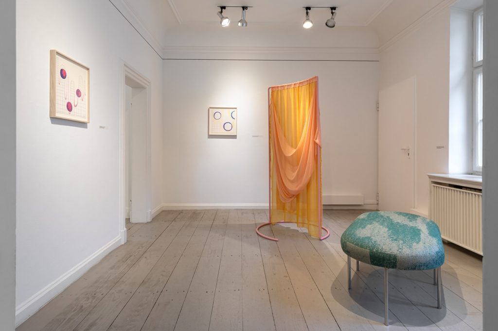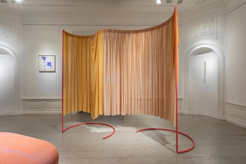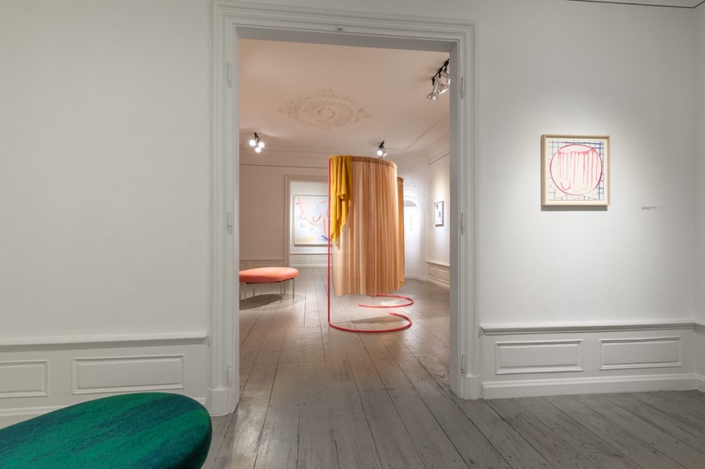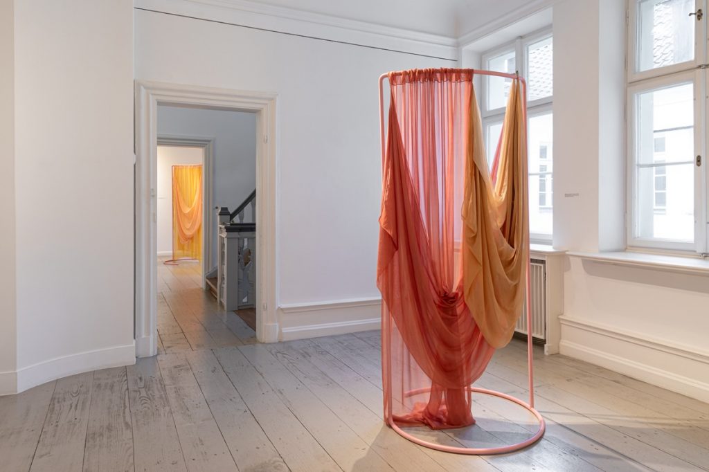 Miejsce na zwijanie i rozwijanie czasu Alicji Bielawskiej to wystawa, w której splatają się różne rejestry doświadczania: materialność i ulotność, teraźniejszość i pamięć, zatrzymanie i płynność. Pofałdowane materie sugerują, że czas nie jest linearny – może się zakrzywiać, powtarzać, nakładać. Prace wchodzą w dialog z miejscem – dawnymi mieszkalnymi przestrzeniami. Relacje pomiędzy rzeźbami, rysunkami a gestami i spojrzeniami odbiorców ulegają nieustannym, subtelnym zmianom. To widzowie tworzą niepowtarzalne, bo osobiste choreografie obecności na wystawie, ożywiając ją swoimi odczuciami, wspomnieniami, ucieleśnioną percepcją i ruchem.