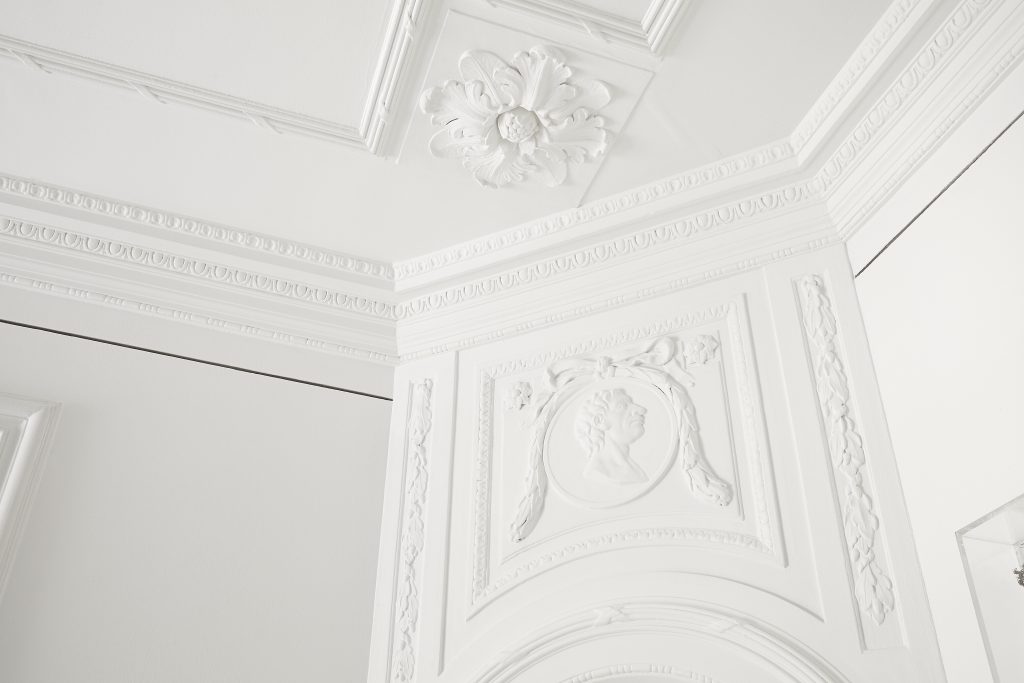 Fasada budynku frontowego podzielona jest na pięć osi, z których środkowa wystaje jako dwuspadowy ryzalit. Tutaj wejście, flankowane przez filary z wolutowymi kapitelami, znajduje się pod półkolistym łukiem, w którym mieści się świetlik nadproża. Gzyms dzieli ryzalit. Na parterze aranżacje owocowe i kwiatowe zdobią nadproża. Pole szczytowe zdobi wieniec laurowy. We wnętrzach zachowało się niemal całkowicie wyposażenie architektoniczne z XVIII wieku. Należą do nich bogato zdobione stropy stiukowe, nisze piecowe z ornamentami medalionowymi, struktura ścian i barokowa klatka schodowa.