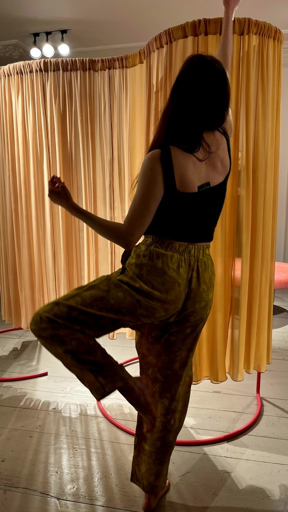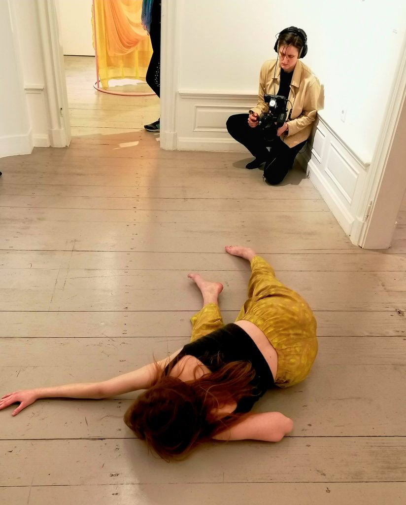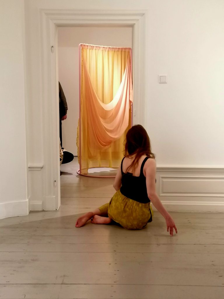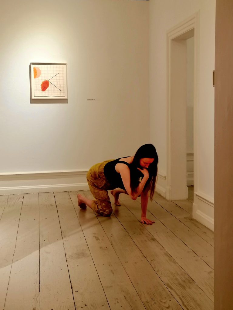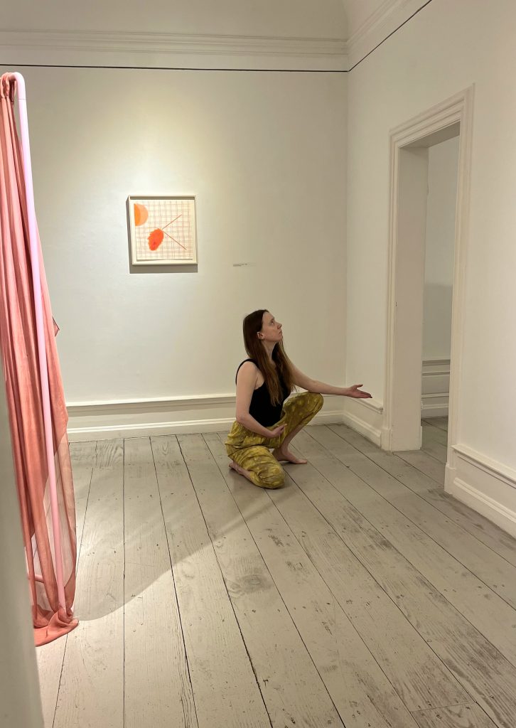 Aleksandra Borys, polska tancerka i choreografka, zajmuje się choreografią na styku sztuki i nauki. W swoich poszukiwaniach artystycznych łączy badania naukowe, kosmologię i ekologię. Na potrzeby aktualnej wystawy w galerii Instytutu Alicja Bielawska – Miejsce na zwijanie i rozwijanie czasu przygotowuje spektakl taneczny site-specific.