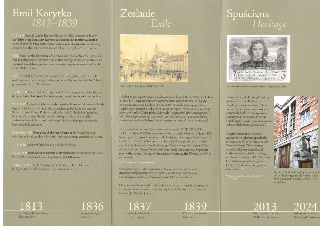 Протягом 26 березня — 29 травня 2026 року у Львові можна ознайомитися із життям та діяльністю Еміля Коритка (1813–1839), польського засланця, гуманіста та етнографа. Банерна виставка експонується у Львівській національній науковій бібліотеці України імені Василя Стефаника і висвітлює внесок Еміля Коритка у пробудження національного духу, а також у формування мовної та культурної ідентичності словенців.
