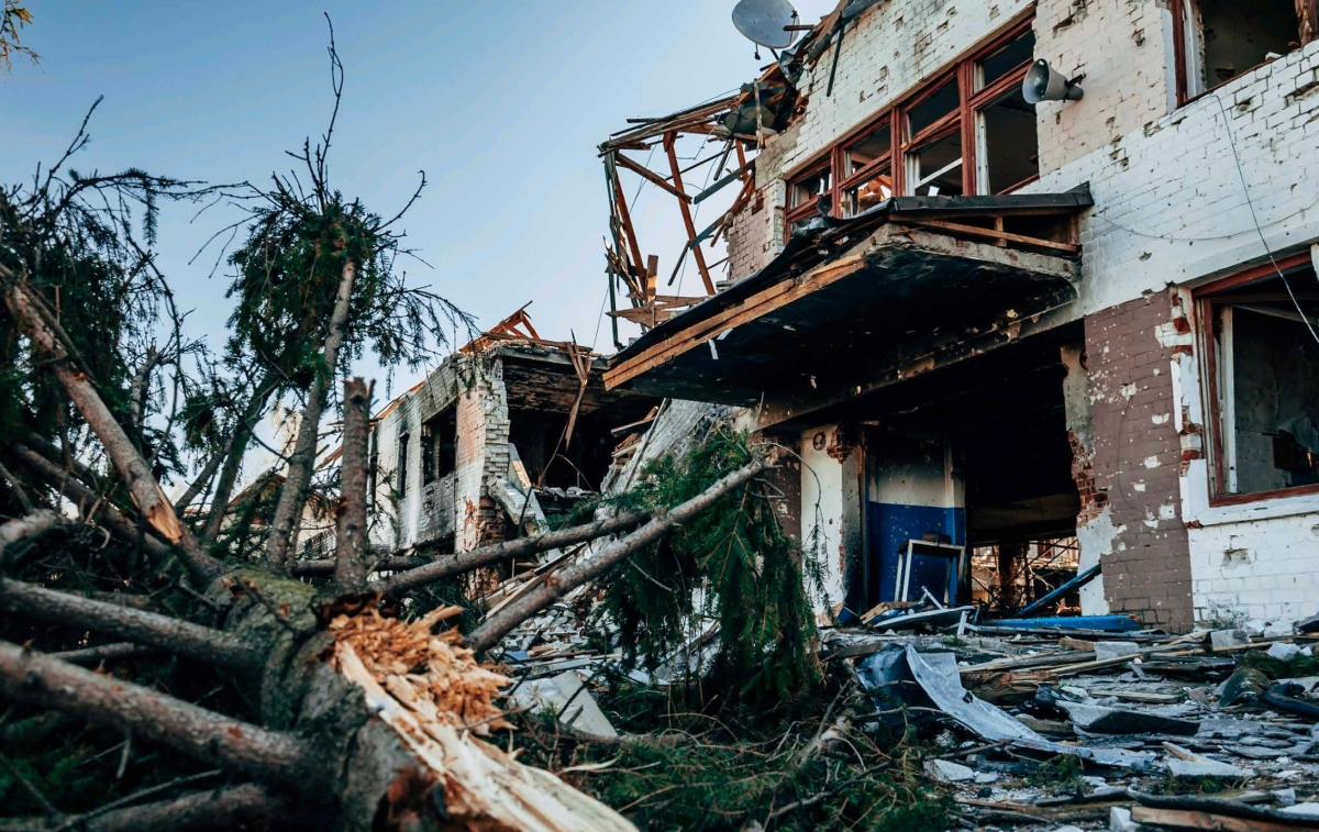 - zerstörtes Skizentrum des ukrainischen olympischen Biathlon-Teams