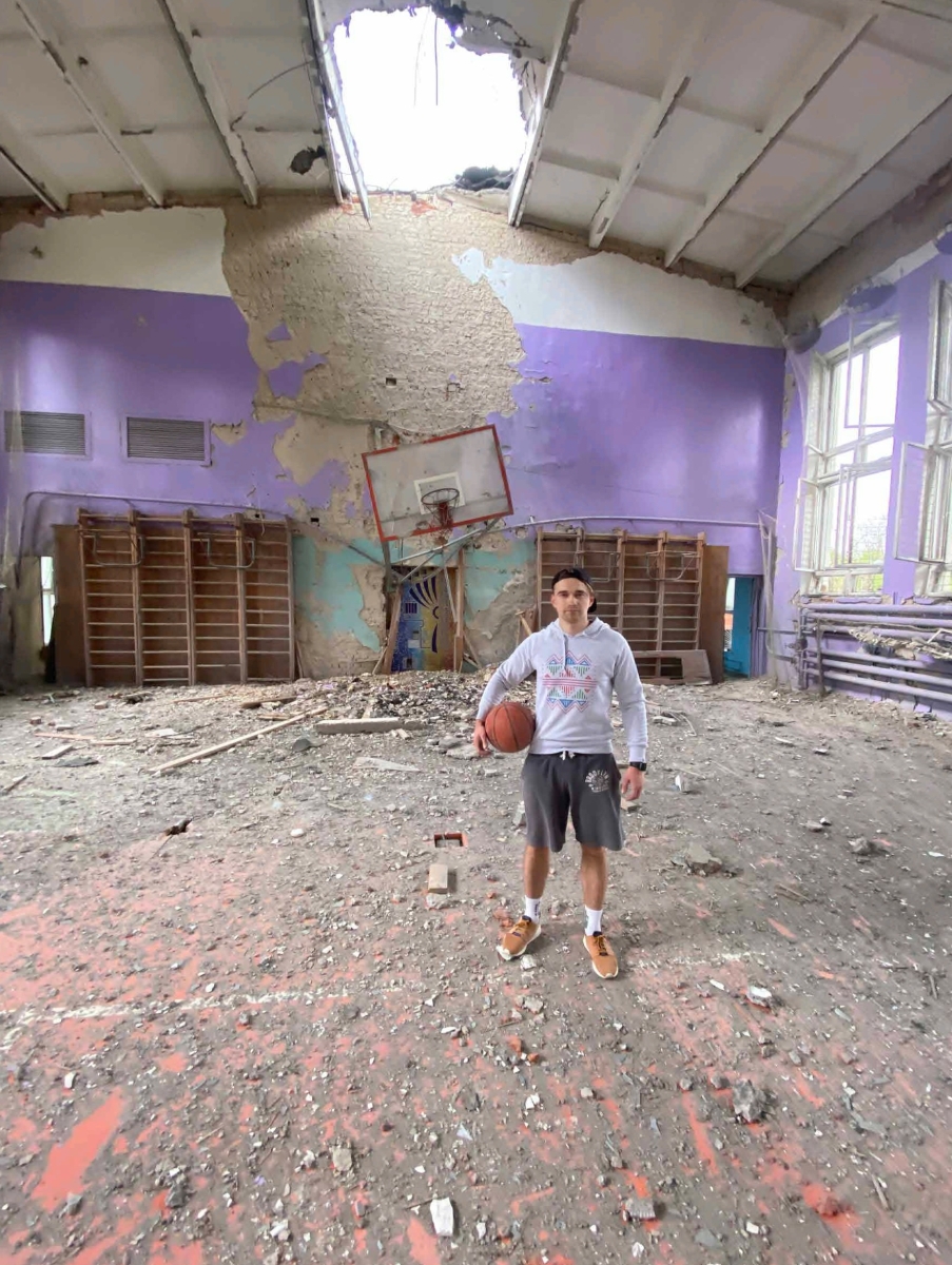- zerstörte Sporthalle der Polytechnischen Universität nach Beschuss