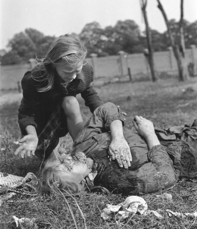 Kazimiera Mika (12) trauert nach einem Luftangriff auf Warschau 1939 um ihre Schwester Andzia (14) © Julien Bryan / Wikipedia / Public Domain