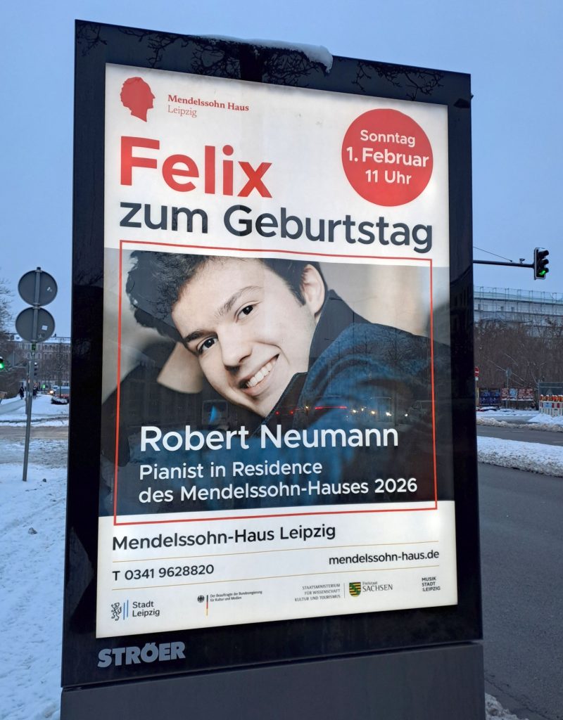 Robert Neumann ist 2026 Artist in Residence im Mendelssohn-Haus. Zum 217. Geburtstag Felix Mendelssohn Bartholdys am 3. Februar spielt er in einer Fest-Matinee im Musiksalon der letzten Wohnung des Komponisten und Gewandhauskapellmeisters Kompositionen aus der Feder von Zeitgenossen. Neumann gewann u.a. den Deutschen Musikwettbewerb und den Internationalen Deutschen Pianistenpreis 2025, den International Classical Music Discovery Award und den OPUS KLASSIK für Nachwuchskünstler.