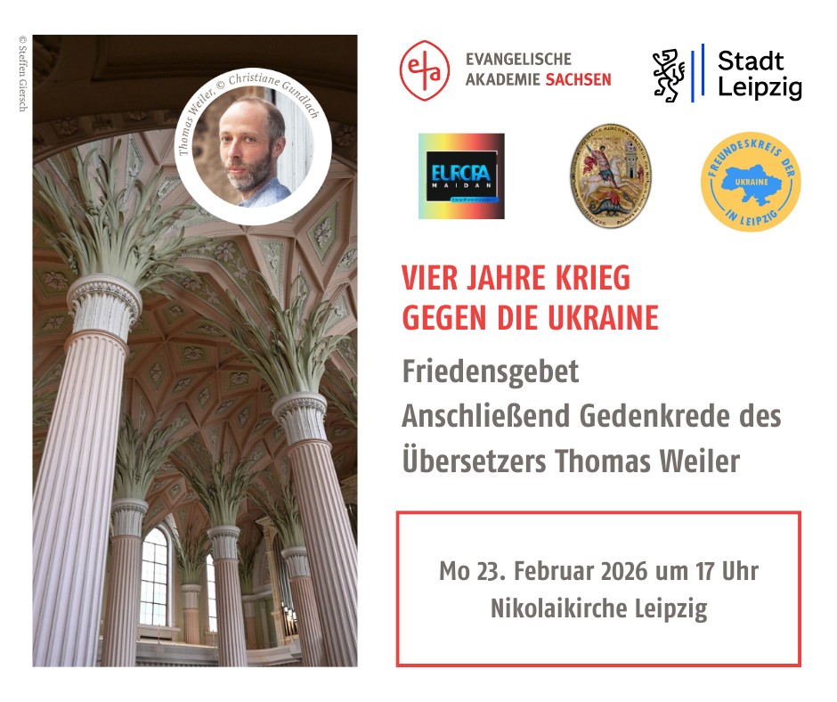 Veranstalter: Ev.-Luth. Kirchgemeinde St. Nikolai Leipzig, Stadt Leipzig, Freundeskreis der Ukraine in Leipzig, Evangelische Akademie Sachsen, EuropaMaidan Leipzig e.V. u.a.