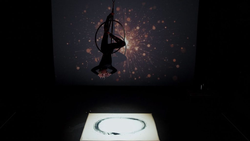 ‘The Circle of Everything’ is an interdisciplinary solo performance from Kamila CK, featuring live Enso painting, aerial dance and moving image projection. After a critically acclaimed premiere at Camden Fringe 2024, the performance comes back to London this May 15th and 16th at the Cockpit Theatre in Marylebone, London, this time in dialogue with a visual exhibition ‘The Cosmos Within’ opening on May 14th – 6th June at the Firepit Gallery in North Greenwich, London.
