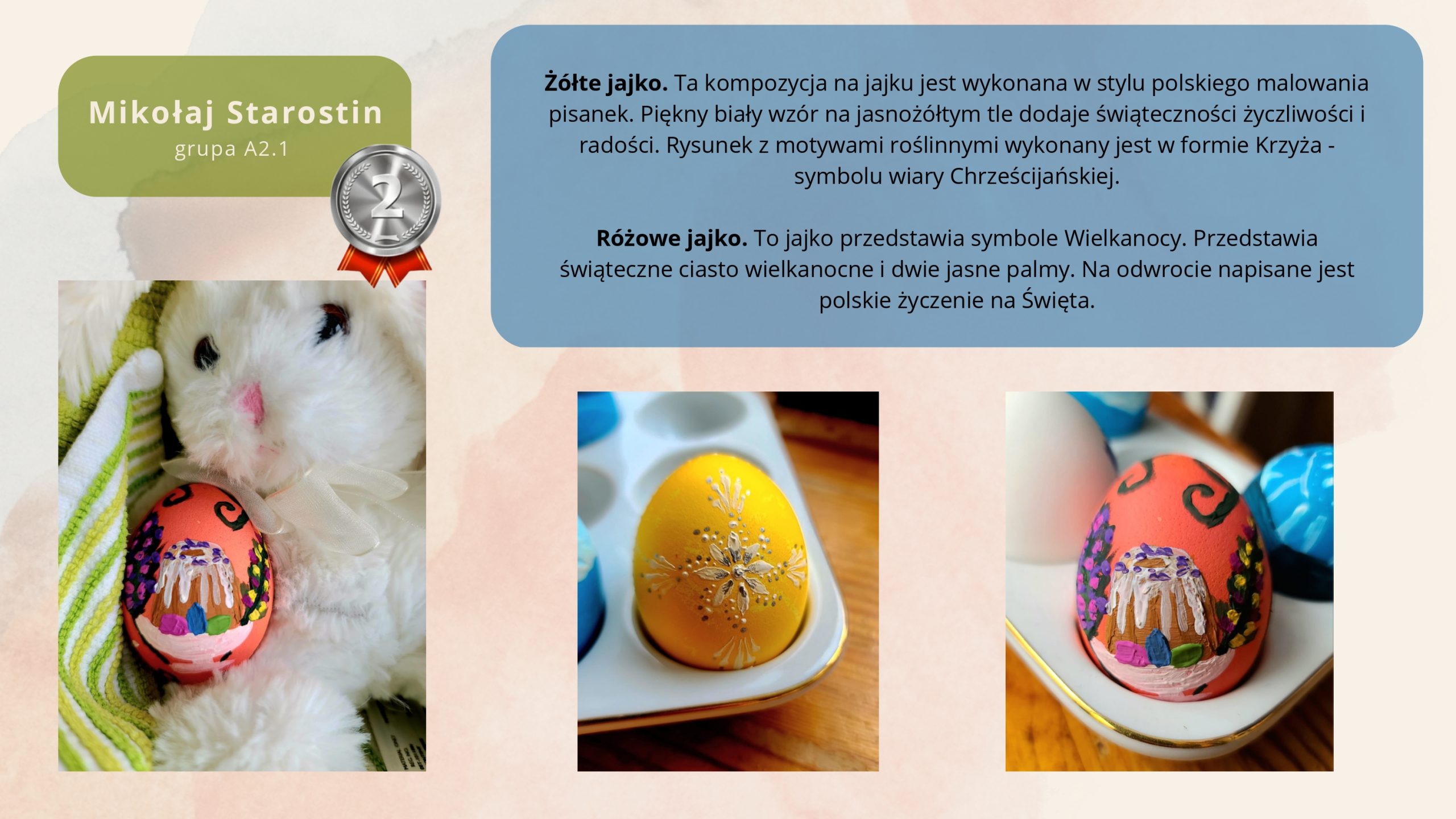 Студенты прислали на конкурс фотографии расписных яиц, сделанных своими руками. По условиям конкурса писанки должны были ассоциироваться с польскими мотивами и сопровождаться описанием.