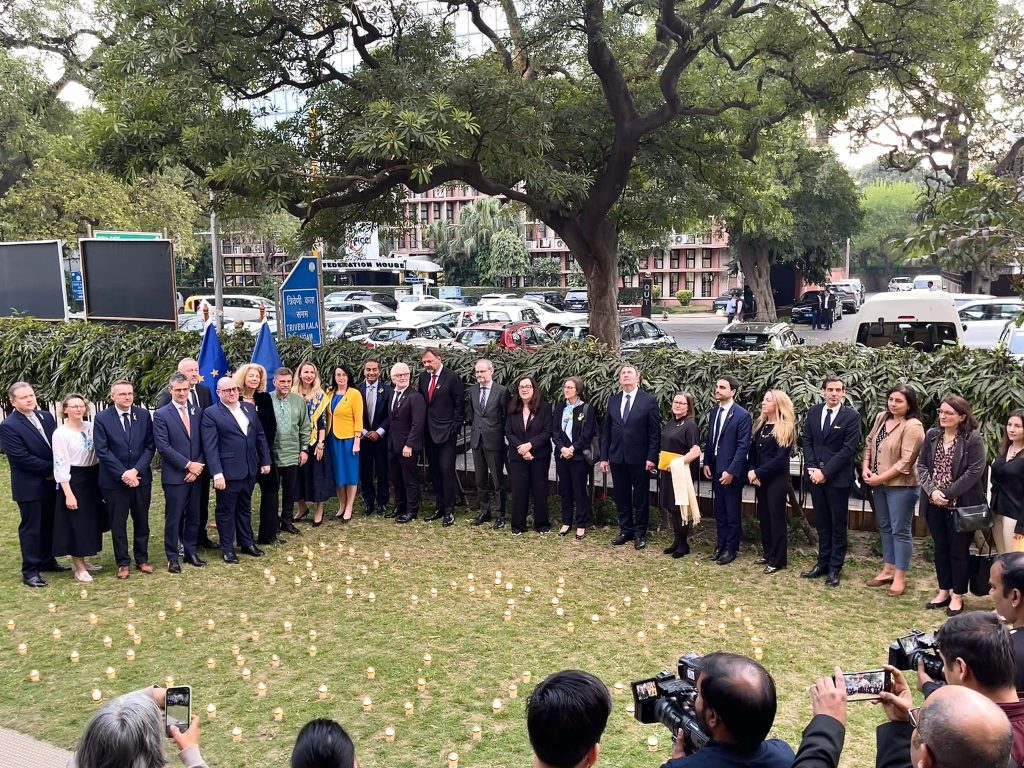 At the “Resonance of Resilience: A Musical Tribute to Ukraine” event on 24th of February 2025, Embassy of Ukraine in India, EU ambassadors, and esteemed dignitaries, united to light candles symbolizing solidarity and hope. This poignant moment reinforced our unwavering belief in Ukraine’s resilience and ultimate triumph in its ongoing struggle. The event featured performances by Dr. Taras Filenko, a Ukrainian pianist, musicologist and an expert in Ukrainian music history, Mr. Tomasz Pająk, a versatile Polish violinist and talented soprano, Ms. Silvija Radjen Kumar. Together they created a memorable evening of music and solidarity at Triveni Kala Sangam.