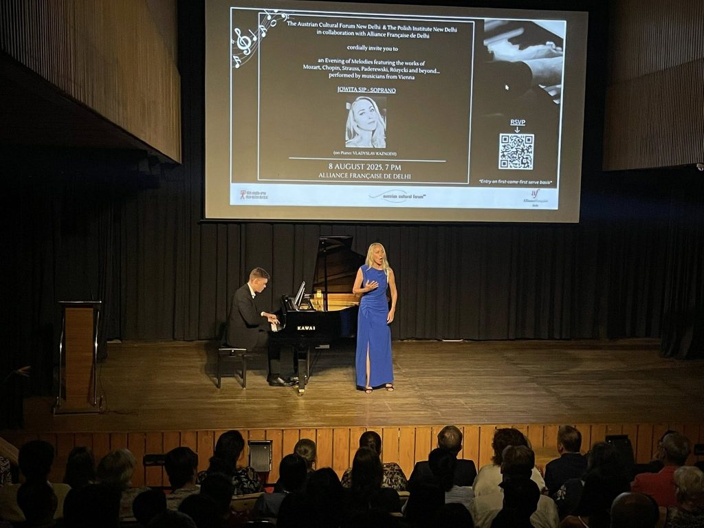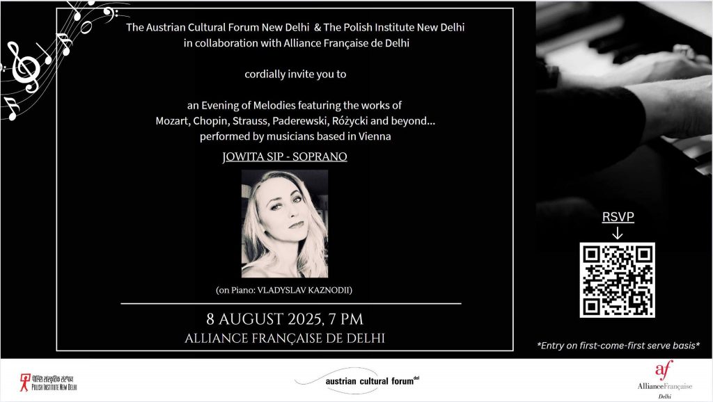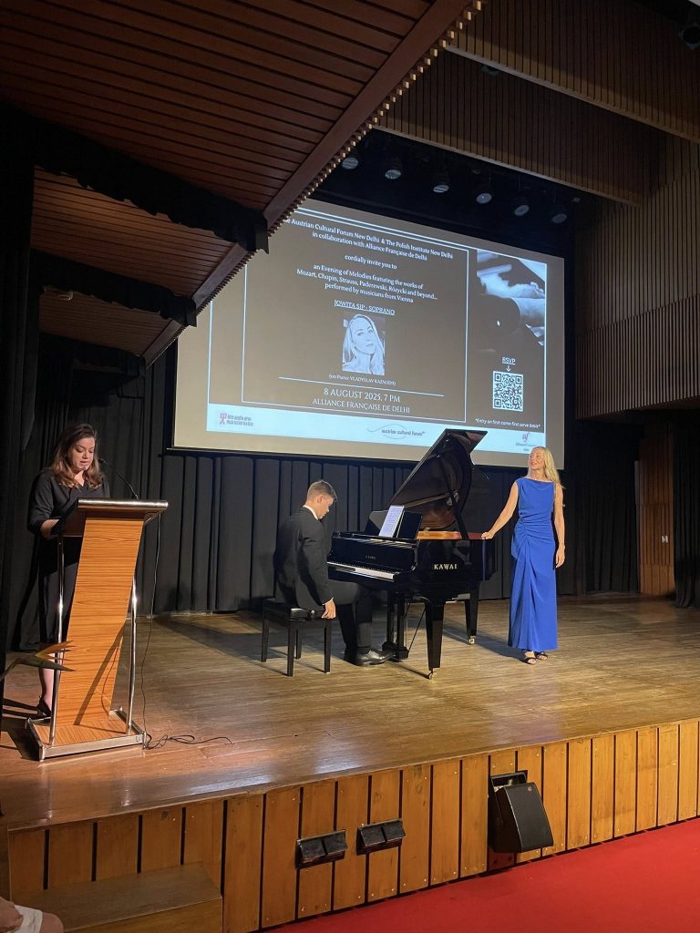 On the evening of 8th of August 2025, the Polish Institute in New Delhi and the Austrian Cultural Forum, in collaboration with Alliance Française, presented “An Evening of Melodies”- a celebration of the timeless musical heritage of Austria and Poland. Held in a spirit of cultural exchange and artistic excellence, the concert offered a mesmerizing journey through the masterpieces of European classical music.