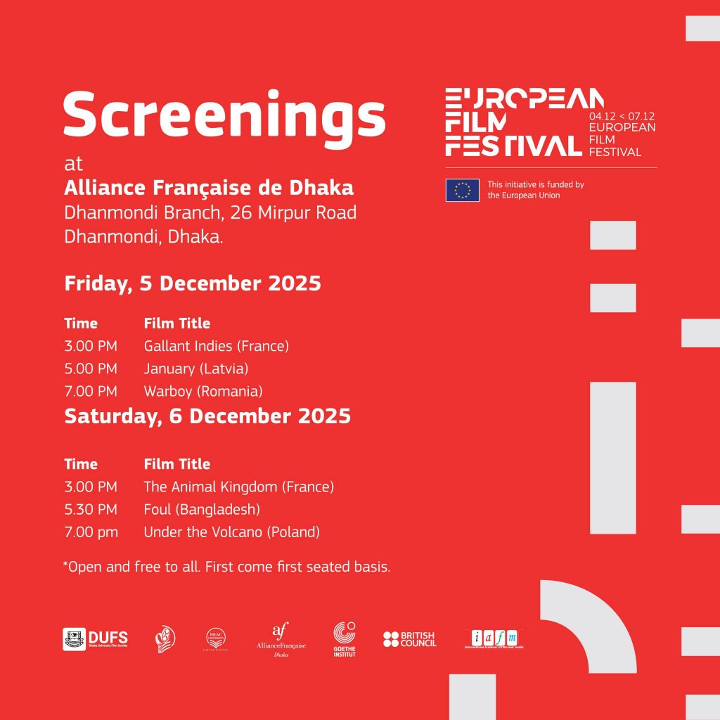 The European Film Festival 2025 returns to Bangladesh from 4–7 December, celebrating the rich diversity and creativity of European cinema. This year’s edition brings together a vibrant selection of films from across Europe and Bangladesh, creating a space where cultures meet, stories connect, and new perspectives emerge.