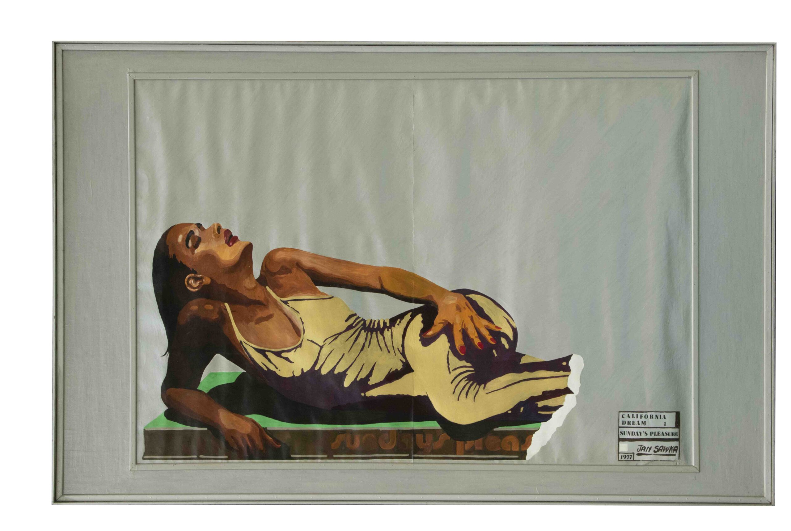 - © California Dream #1, Sunday’s Pleasure,” 1977, 48 x 75″, Acrylic on Masonite. Copyright Jan Sawka Estate. Photo by Camille Murphy