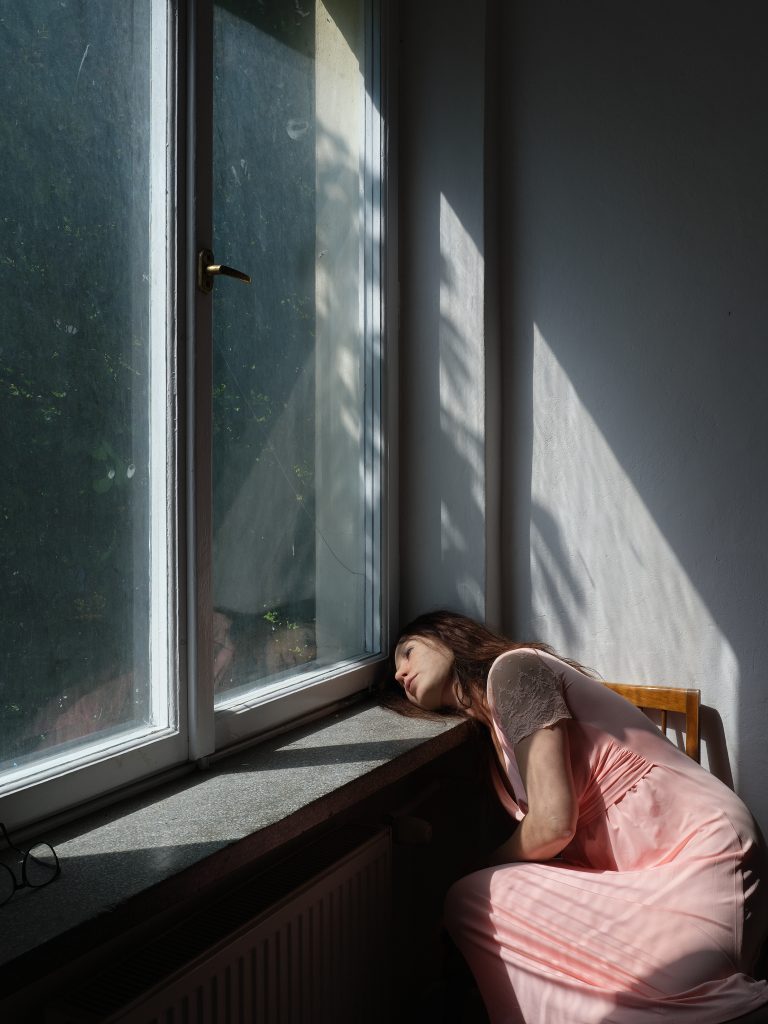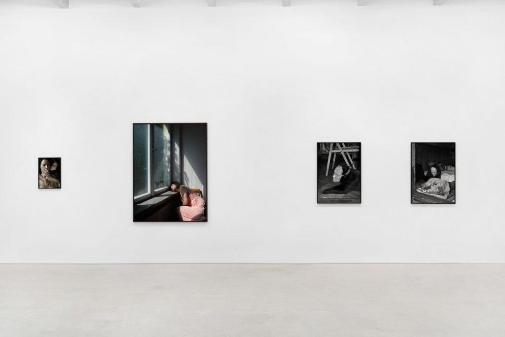 The exhibition centers on The Daughter (2025), a new body of work in which Grzeszykowska employs a hyperrealistic mask based on her own face at the age of fourteen, reconstructed from family photographs. Used in performative photographs with relatives, the mask enables her to reframe her place within domestic dynamics. Its inanimate features emphasize passivity, while the combination of a mature body with a youthful face produces an ambiguous effect that underscores themes of memory, identity, and temporality.