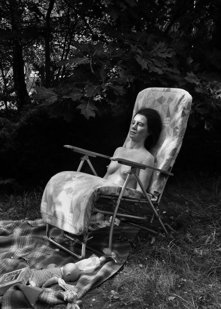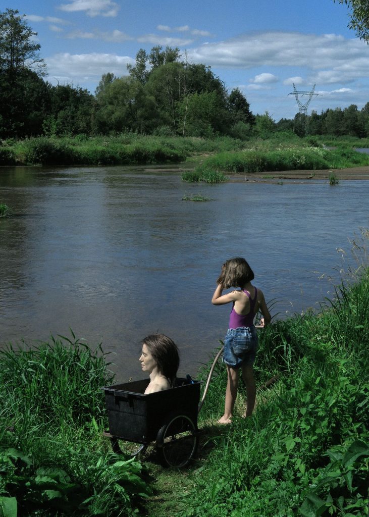 Aneta Grzeszykowska (b. 1974, Warsaw, Poland) is known for performance, photography, sculpture, and video exploring the fragmented body and the blurred boundaries between human and nonhuman, synthetic and organic; in her photographic series Mama (2018), she portrays her body as a lifelike silicone double interacted with by her daughter, challenging traditional maternal roles and self-representation.