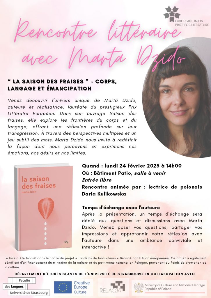 - 24 février –rencontre à l’université de Strasbourg en compagnie de Daria Kulikowska.