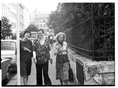 Photograph taken in 1979 by the secret police while monitoring people connected with the arrival of Oxford professor Kathleen Wilkes, who was giving a lecture at the Tomins‘. The IV. Directorate assigned twelve employees and six company cars to the operation. Pictured from left: Kateřina Dejmalová, Zdena Tominová, and Věra Jirousová in Prague. Source:  Security Services Archive (ABS), SNB Surveillance Administration Fund – Files, Arch. Nr. SL-6467 MV (Code Name „Engineer 1“)