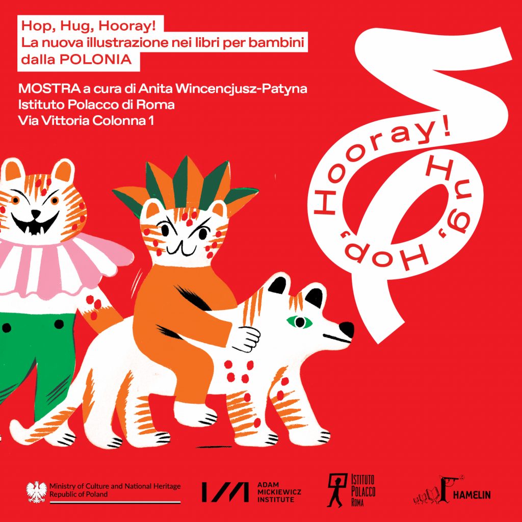 Martedì 10 febbraio alle ore 18.30 presso l’Istituto Polacco di Roma sarà inaugurata la mostra Hop, Hug, Hooray! La nuova illustrazione nei libri per bambini dalla Polonia, curata da Anita Wincencjusz-Patyna e organizzata dall’Istituto Adam Mickiewicz e l’Istituto Polacco di Roma. La mostra, presentata lo scorso anno a Bologna, durante la Bologna Children’s Book Fair (BCBF), offre un’ampia panoramica sull’illustrazione polacca di oggi dei libri per l’infanzia. Con una selezione di opere tratte dai più recenti e originali albi illustrati, la mostra invita il pubblico a scoprire un universo visivo ricco di emozioni e creatività. Ogni illustrazione racconta una storia, offrendo uno spunto per riflettere sulla bellezza di crescere insieme, condividere il nostro mondo e costruire una connessione tra culture diverse. Gli artisti in mostra sono: Jacek Ambrożewski, Joanna Bartosik, Dominika Czerniak-Chojnacka, Maria Dek, Agata Dudek & Gosia Nowak, Emilia Dziubak, Gosia Herba, Anna Kaźmierak, Klaudia Kozińska, Gosia Kulik, Paweł Mildner, Urszula Palusińska, Justyna Sokołowska, Katarzyna Walentynowicz.