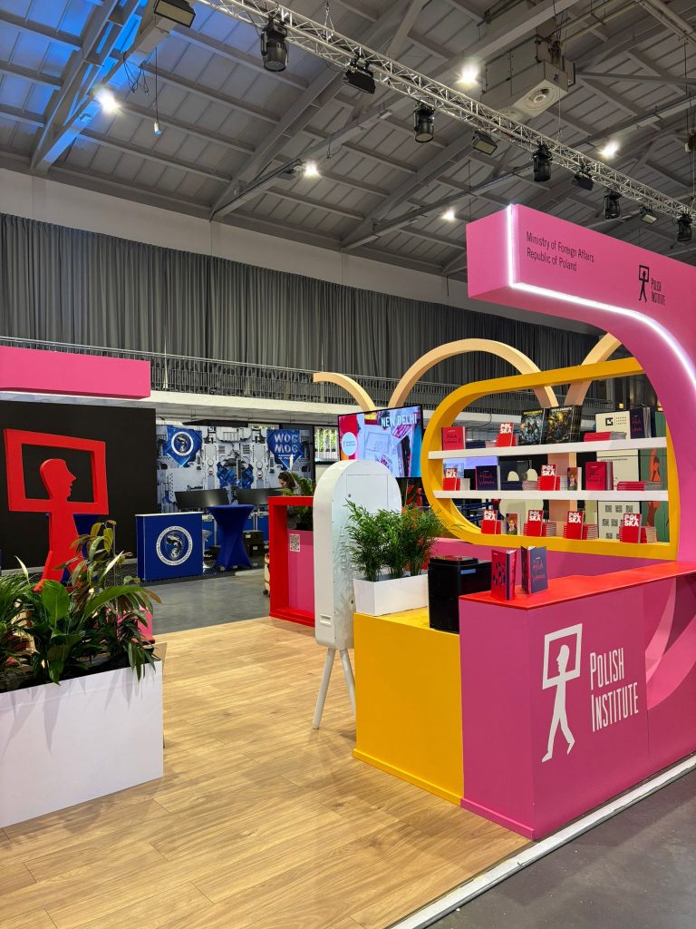 На рекламния щанд на мрежата за културна дипломация на нашата страна – преди всичко на Полските институти, но също така и на посолствата и консулствата – гостите на конференцията имаха възможността да се запознаят с дейността на тези учреждения, да изгледат кратък филм, представящ широкия спектър от културни събития, организирани от Институтите по света, да прочетат публикации на МВнР, включително книгите за изтъкнати полякини „Outstanding Polish Women“ и обновения англоезичен пътеводител About Polska; да си направят снимка във фотокабина с изкуствен интелект, която виртуално пренася в избрани локации на Полските институти, както и да разговарят с представители на Дирекцията по културна дипломация на МВнР и Полските институти, присъстващи на място.