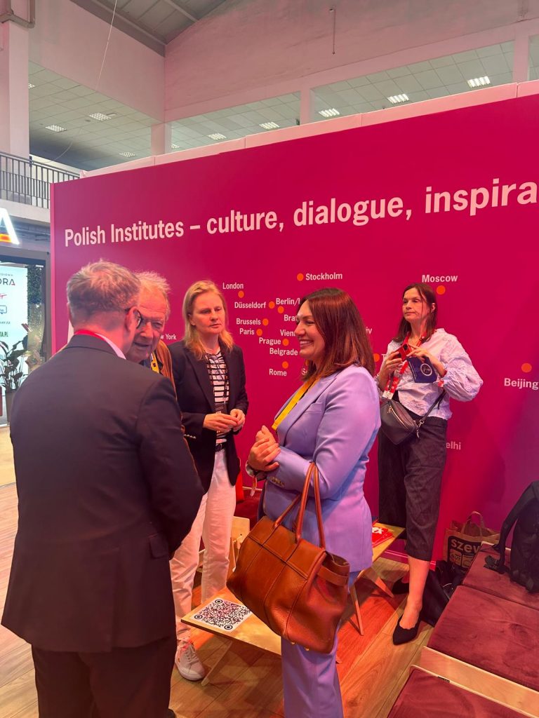 W pierwszym dniu konferencji Impact’25 oprócz Ministra Sikorskiego stanowisko odwiedzili m.in. Anne Applebaum, Olga Tokarczuk, Michał Rusinek czy Adam Michnik.