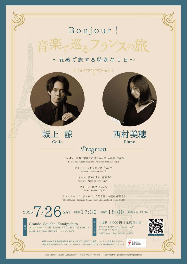 出演:坂上 諒(チェロ)、西村 美穂(ピアノ)