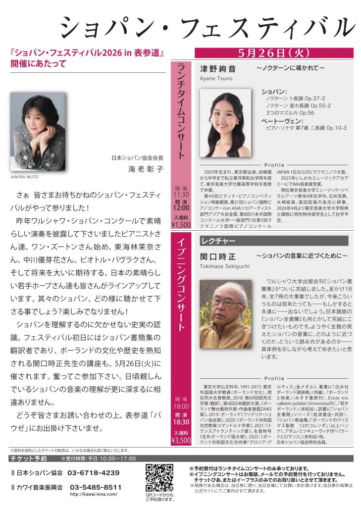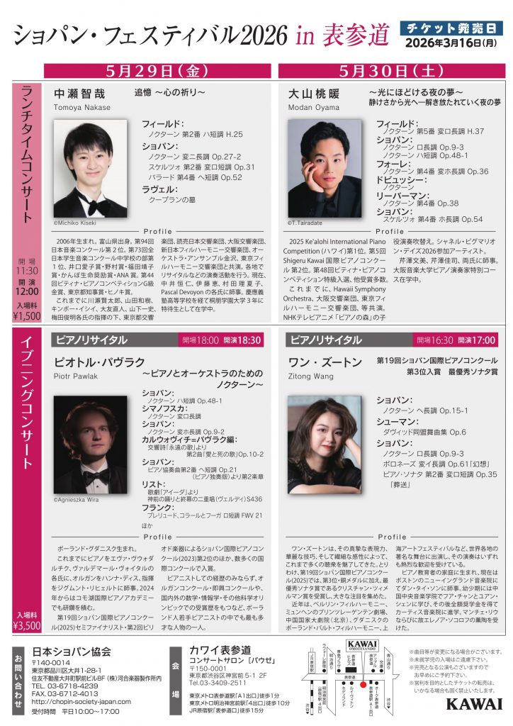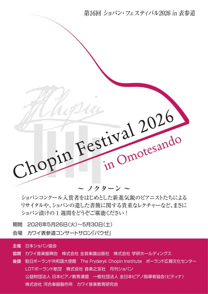 詳細:https://www.kawai.jp/news/chopin-festival2026/