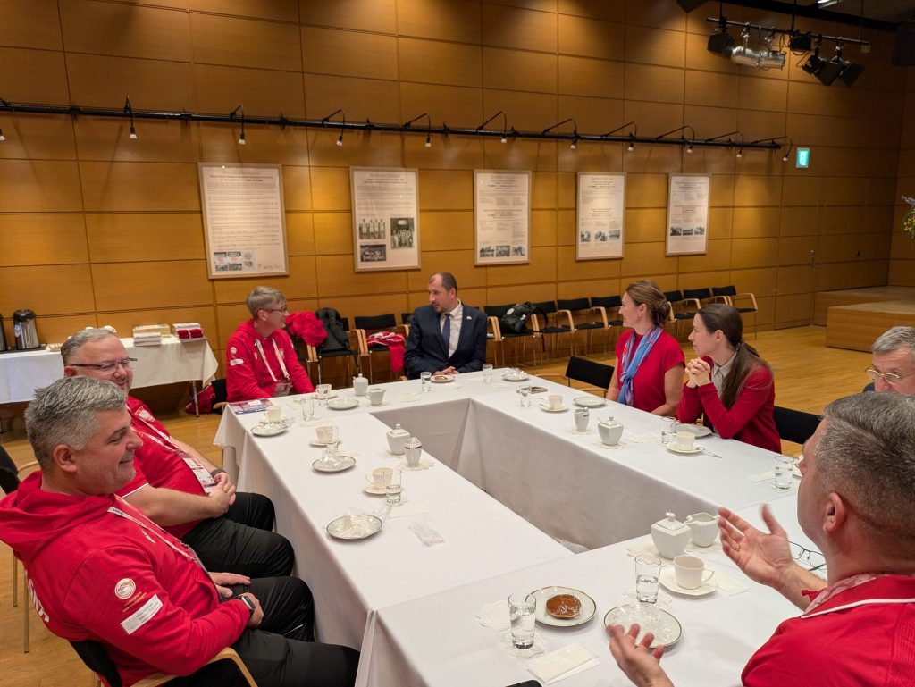 11月18日、駐日ポーランド共和国大使館およびポーランド広報文化センターは、東京で開催の第25回夏季デフリンピックのため都内に滞在中のポーランド代表団の訪問を歓迎しました。ポーランドろうあスポーツ連盟より、ヴォイチェフ・ステンプルスキ代表、トマシュ・ヴウォダルチク副代表、ヤロスワフ・ヤニェツ事務総長、手話通訳のマルチン・プシヴァラ氏、広報のマリウシュ・ミハラク氏、ビドゴシュチュ カジミェシュ大王大学アダム・シュルツ先生をお迎えしました。