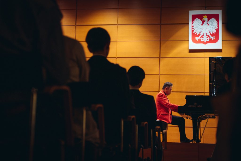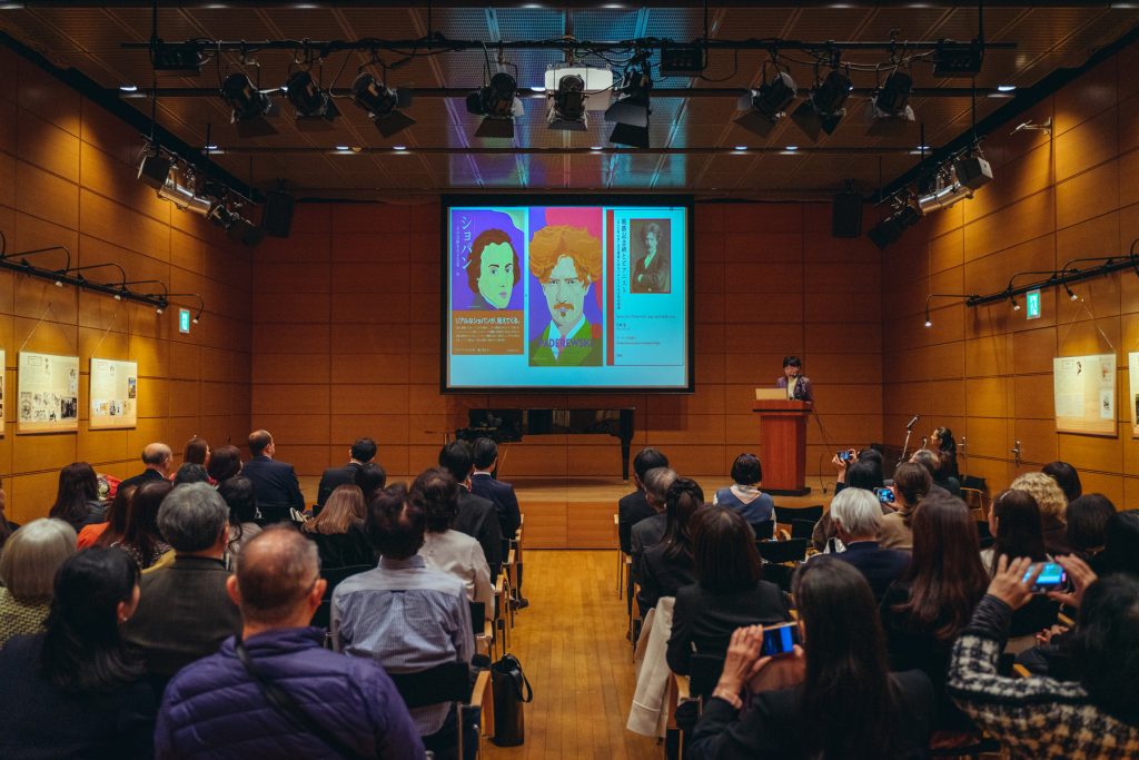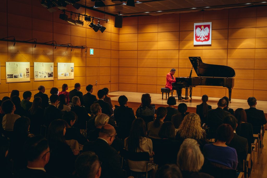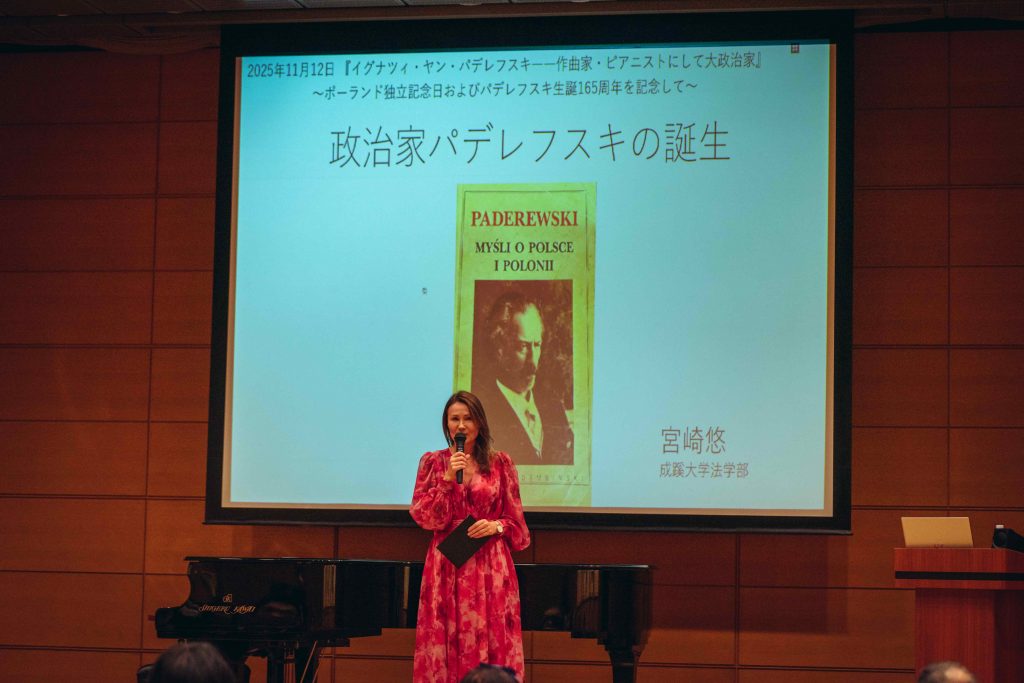 ポーランド広報文化センター所長による開会の挨拶ののち、駐日ポーランド共和国大使館ウカシュ・オスミツキ領事よりご挨拶いただき、ポーランド独立の父の一人として知られるパデレフスキが世界における主権国家ポーランドの理念の普及に果たした役割を強調しました。領事は、11月11日のポーランド独立記念日はポーランド人にとって祖国を取り戻した喜びの日であると同時に、ポーランドを信じて独立回復の戦いを応援したすべての人々に感謝する素晴らしい機会であると述べました。中でも、日本は第一次世界大戦後にポーランド独立を承認した世界で最初の国の一つであることに言及し、ポーランドと日本の関係が素晴らしい発展を遂げていることに喜びの意を示しました。加えて、両国の経済関係にも言及し、2025年9月には、ポーランドのORLEN社が所有するガス運搬船「イグナツィ・ヤン・パデレフスキ号」によって日本の大阪ガスへ液化天然ガス(LNG)が供給されたことも述べました。