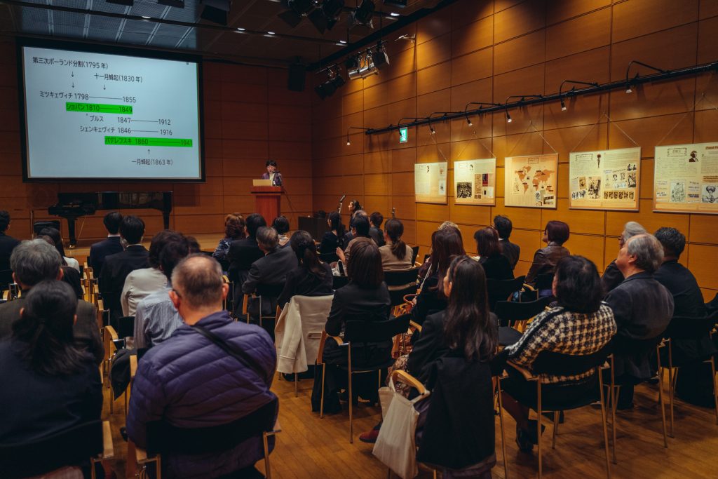 ポーランドの偉大な作曲家、ピアニストにして大政治家であるパデレフスキの人物像については成蹊大学法学部 宮崎悠教授よりご講演をいただきました。宮崎教授は『戦勝記念碑とピアニスト』(群像社 2022年)の著者であり、本著書はポーランド広報文化センター協力による企画「日本語で読むポーランド文化叢書」の枠組みで刊行されています。
