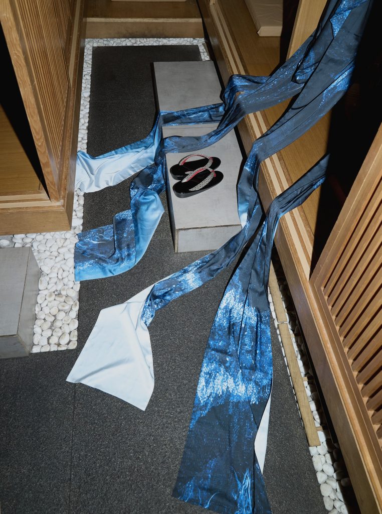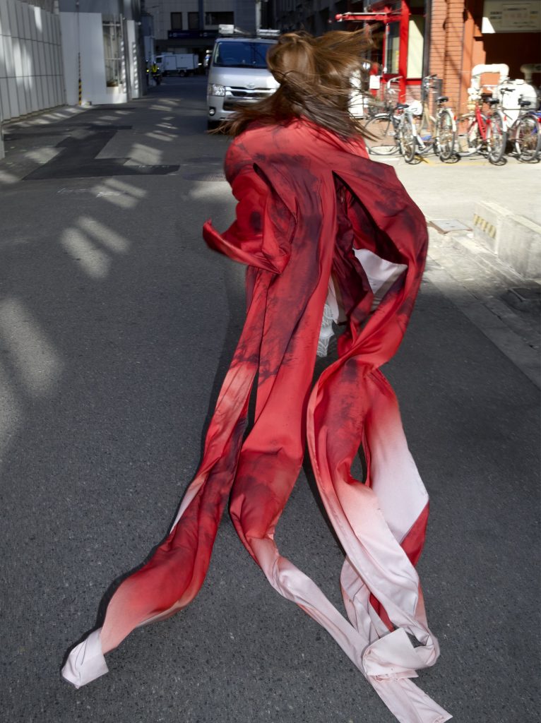 中心となるのは、「重ね合わせる」ことでできたナラティヴである。ハヴロットは、平安時代の宮廷衣装の伝統である十二単から着想を得ているが、その再現を目的としてはいない。彼女の関心はその形式ではなく、層を重ねるという思想そのものにある。十二単において各層が意味を持っていたように、ハヴロットの作品もまた、感情、記憶、社会的文脈を織り込んだ層で構成されている。