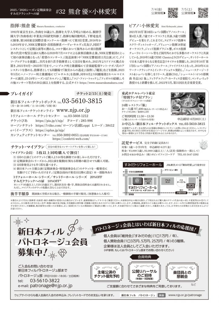 お申込み・お問合せ:03-5610-3815(新日本フィルチケットボックス)