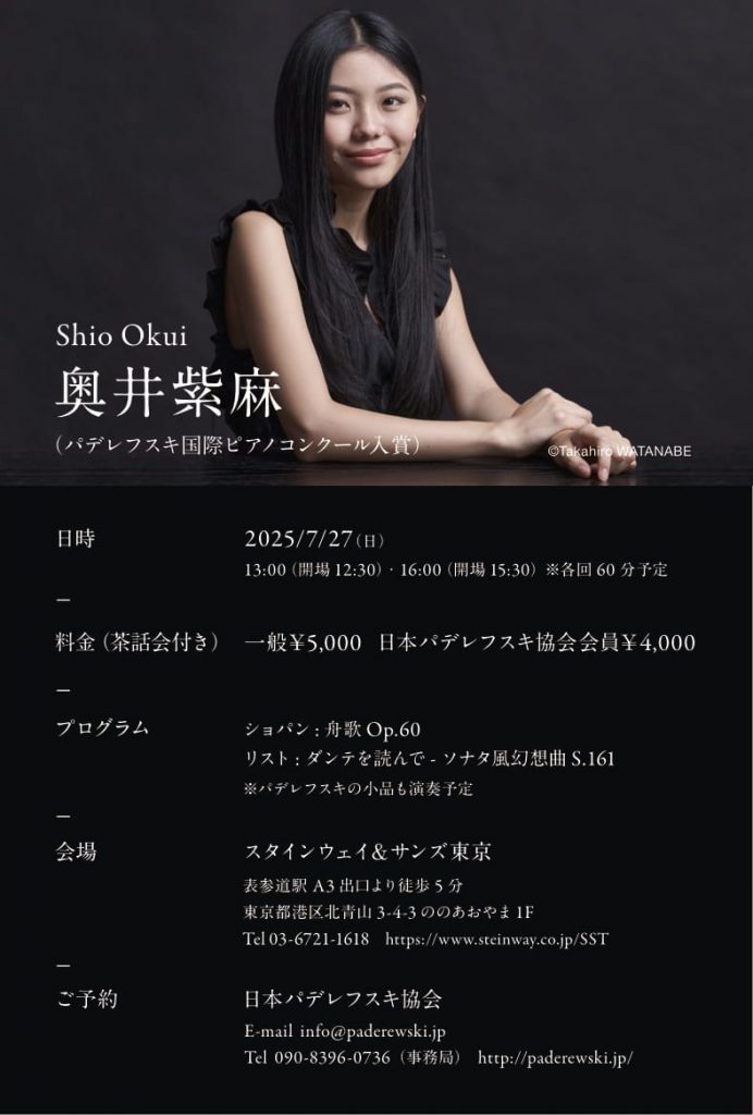 Kontakt/rezerwacja: Tel.: 090-8396-0736/E-mail: info@paderewski.jp