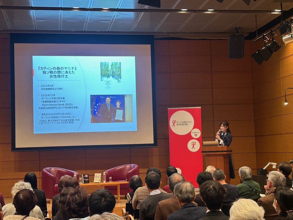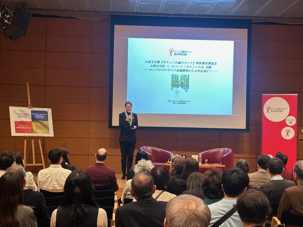 W 4. rocznicę pełnowymiarowej agresji Rosji na Ukrainę, Instytut Polski w Tokio zorganizował we współpracy z wydawnictwem Kawade Shobo Shinsha spotkanie z panią Ayano Kobayashi, autorką książki „Janina z Lasu Katyńskiego”. Publikacja poświęcona Janinie Lewandowskiej – córce generała Józefa Dowbor-Muśnickiego i jedynej żołnierce wśród ofiar zbrodni katyńskiej – otrzymała w 2025 r. wyróżnienie w konkursie Ministra Spraw Zagranicznych na Najlepszą Książkę Historyczną.