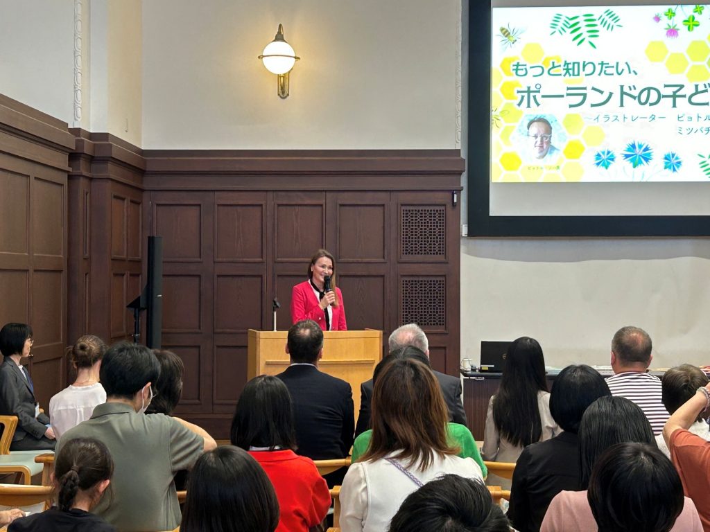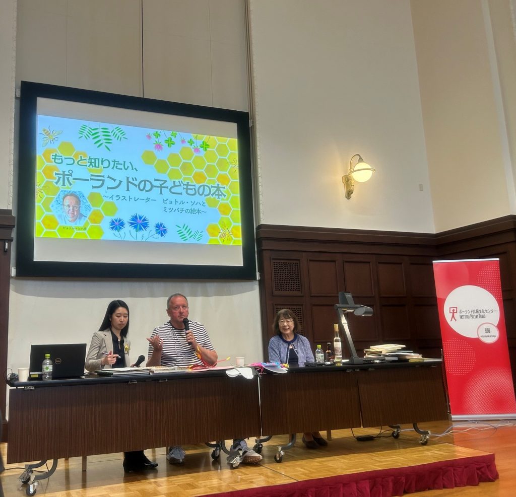 19 kwietnia IP przygotował również, we współpracy z Międzynarodową Biblioteką Literatury Dziecięcej w Tokio, wydarzenie poświęcone polskim książkom ilustrowanym dla dzieci. Niezwykle ciekawą opowieść Piotra Sochy o swojej pracy artystycznej oraz fascynującym świecie pszczół poprzedziła krótka prezentacja o Polsce, przygotowana przez ekspertkę IP w Tokio Remikę Minoguchi oraz prelekcja na temat polskiej literatury dziecięcej – wygłoszona przez Kazuko Adachi, tłumaczkę wielu polskich książek dla dzieci i autorkę m.in. Antologii współczesnej poezji japońskiej. Wiśnie rozkwitłe pośród zimy, Zasmarkane dziecko bogów i inne baśnie japońskie oraz Słownika minimum japońsko-polskiego i polsko-japońskiego.