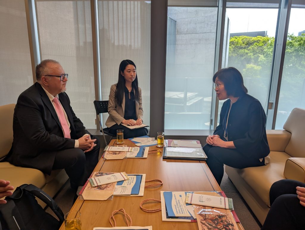 Wizyta w Międzynarodowej Bibliotece Literatury Dziecięcej w Tokio była także okazją do kurtuazyjnego spotkania przebywającego w Japonii dyrektora Departamentu Dyplomacji Kulturalnej i Promocji Polski MSZ Rolanda Chojnackiego z dyrektor biblioteki – Tomoko Tanaką. Podczas rozmowy poruszono m.in. temat bogatego księgozbioru polskiej literatury dziecięcej będącego w posiadaniu tokijskiej biblioteki.