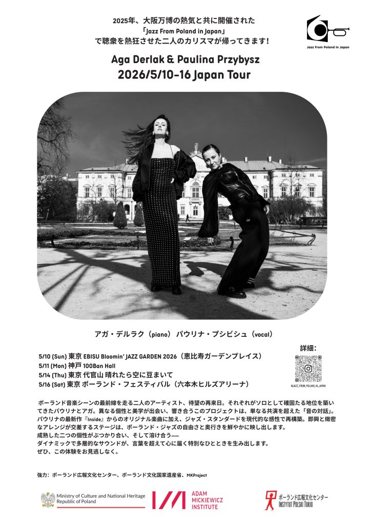 昨年、大阪万博を機に開催された「Jazz From Poland in Japan」で聴衆を熱狂させた二人のカリスマ・ミュージシャン、ピアノのアガ・デルラクとヴォーカルのパウリナ・プシビシュが再び来日します。