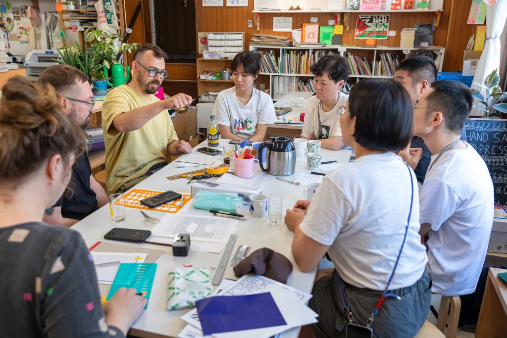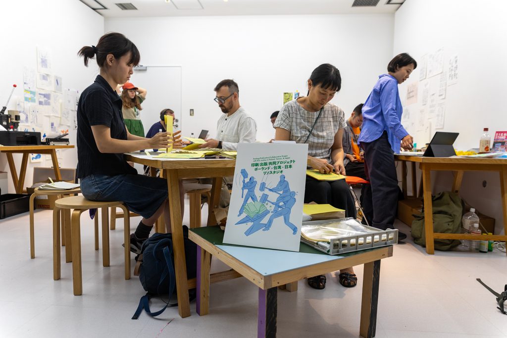 開催期間中、7月7日から7月9日までは、Hand Saw Pressにてポーランド・日本・台湾のアーティストに向けてプリントワークショップや創作研究が催されました。参加したアーティストは以下のとおりです。ミハウ・ホイェツキ(Oficyna Peryferie/ポーランド)、ダニェル・グトフスキ(Togu Riso Press/ポーランド)、Liu Chao-Tze (Mulu Office/台湾)、Zhou Junsheng (Mulu Office/台湾)、高田光(Puresu de Tokyo/日本)、マルタ・トミャク(Togu Riso Press/ポーランド)、安藤僚子・ 菅野信介(Hand Saw Press/日本)。