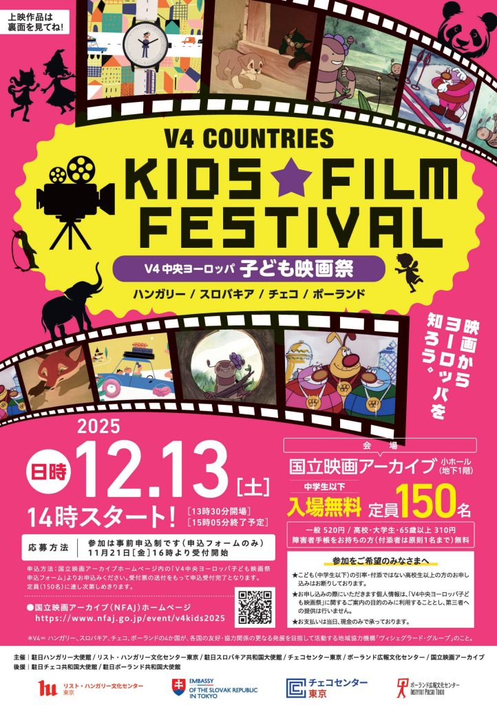 2025年12月13日、日本国立映画アーカイブにて、毎年恒例の映画イベント「V4中央ヨーロッパ 子ども映画祭」が開催されます。ヴィシェグラード・グループ4カ国(ポーランド、ハンガリー、スロバキア、チェコ)のアニメーション作品をご覧いただけます。