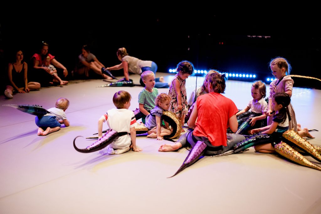 Spektaklio metu menininkės kviečia šeimas įsitraukti į judesio žaidimą su atlikėjomis ir pažadinti kūrybinę energiją, dažnai slypinčią mūsų „uodegose“.