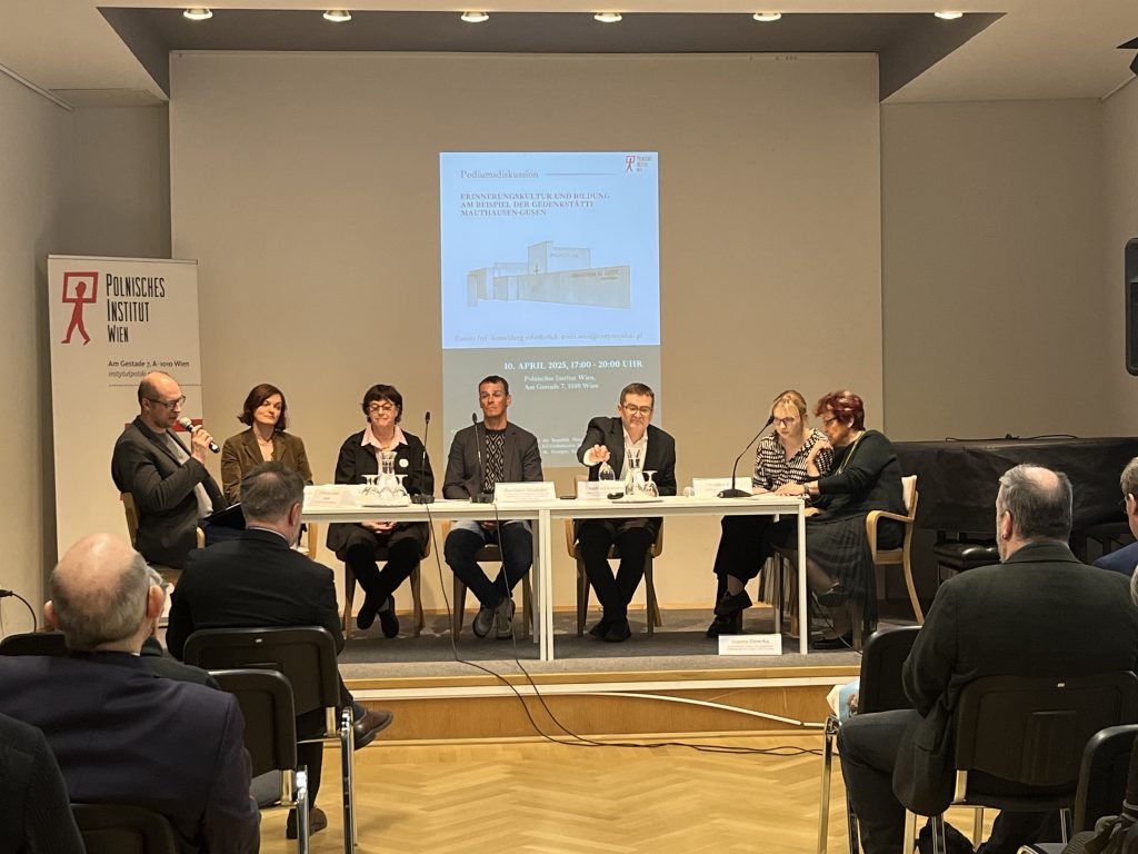 Am 10. April 2025 fand im Polnischen Institut Wien eine eindrucksvolle Podiumsdiskussion zur Rolle der Erinnerungskultur in der historisch-politischen Bildung statt. Die Veranstaltung mit dem Titel „Erinnerungskultur und Bildung am Beispiel der Gedenkstätte Mauthausen-Gusen“ vereinte Expertinnen und Experten aus Polen und Österreich, die sich mit zentralen Fragen der Gedenkstättenpädagogik, der Vermittlung von Geschichte und der Bedeutung von Bildungsorten wie KZ-Gedenkstätten auseinandersetzten.